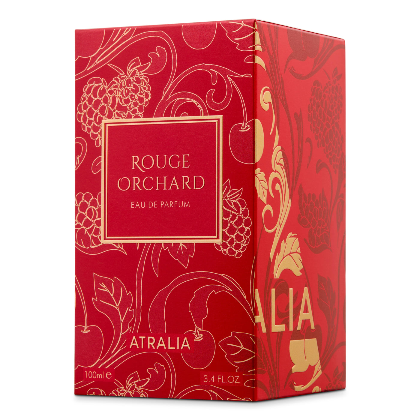 Atralia Rouge Orchard is a radiant and feminine fragrance that captures the allure of ripe orchard fruits wrapped in velvety florals and warm sweetness. It opens with a sparkling blend of pink pepper and juicy raspberry, creating a vibrant red-fruit brightness touched by soft spice. At the heart, romantic rose and succulent cherry unfold together, forming a lush floral-fruit bouquet that feels elegant and indulgent. Finally, the base settles into creamy vanilla and smooth patchouli, leaving a sensual, softly sweet trail that is both sophisticated and irresistibly addictive.
